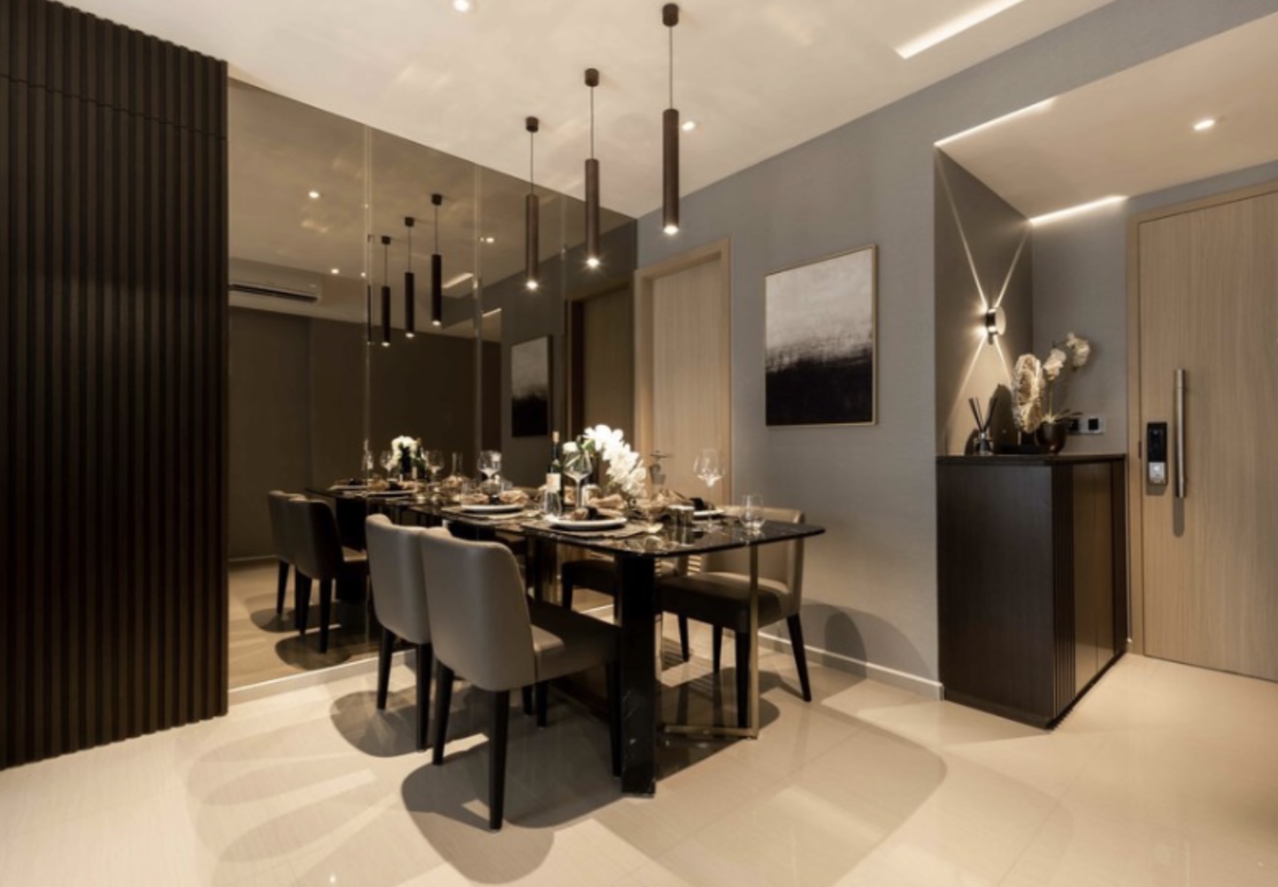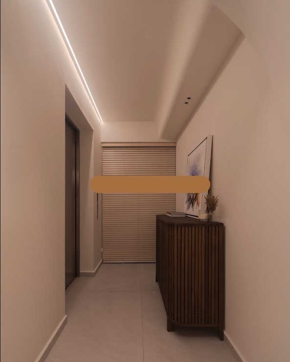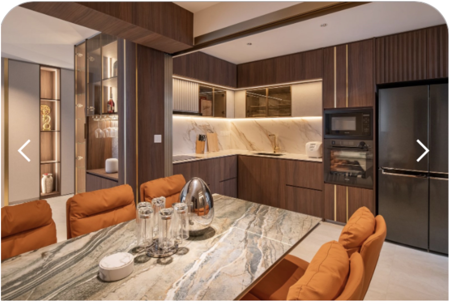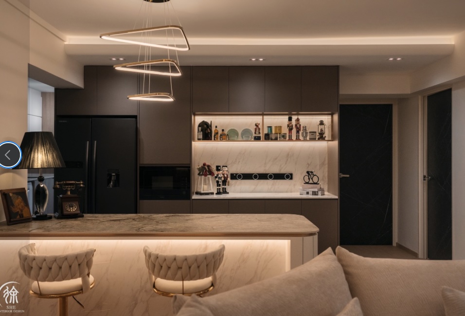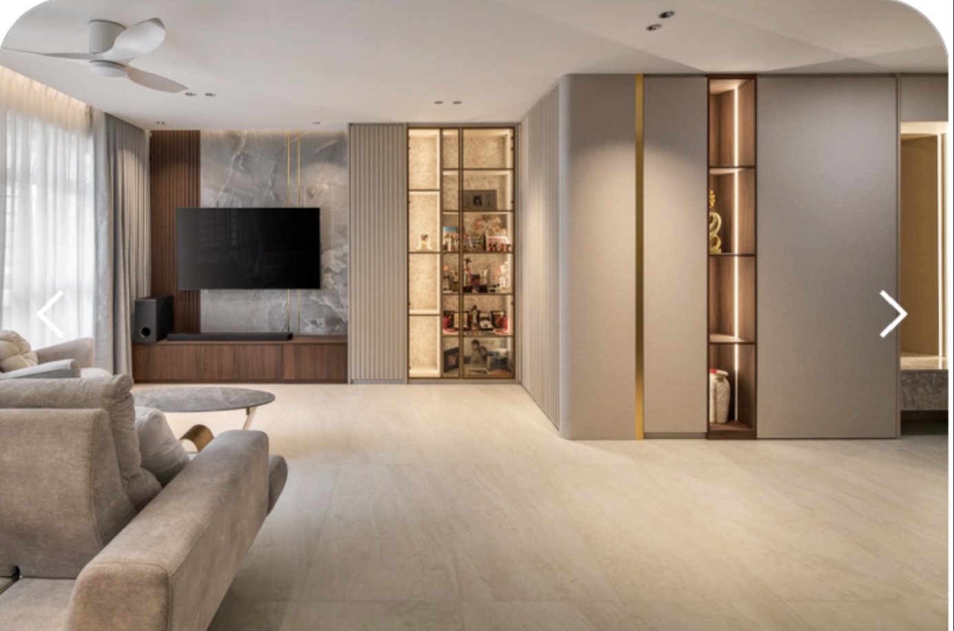Has the modern luxe feel, like the panelling on the walls/ceilings with the downlights. However too much wood area makes overall colour a bit too dark